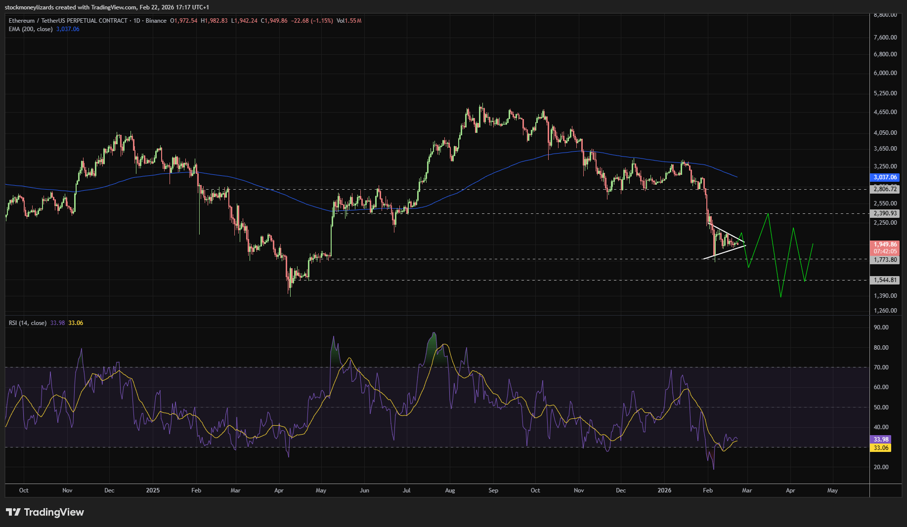 ETH is compressing inside a bearish pennant.