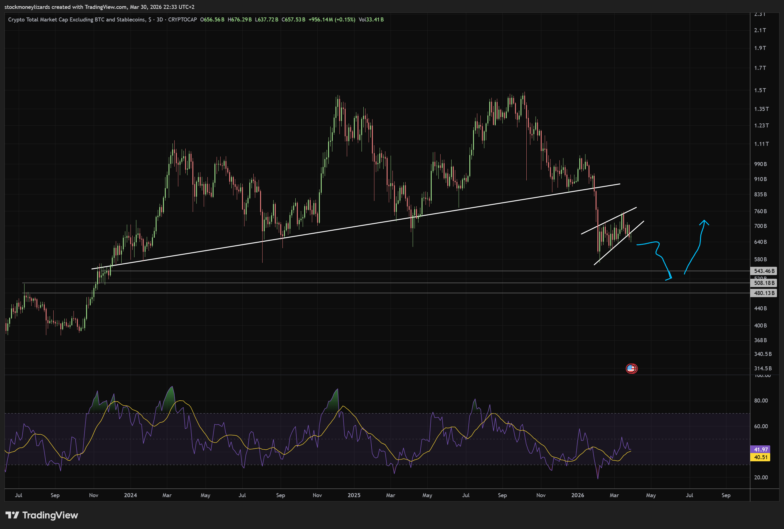 TOTAL2 tracks the total altcoin market cap excluding BTC and stablecoins - so it shows the real strength of alts.
