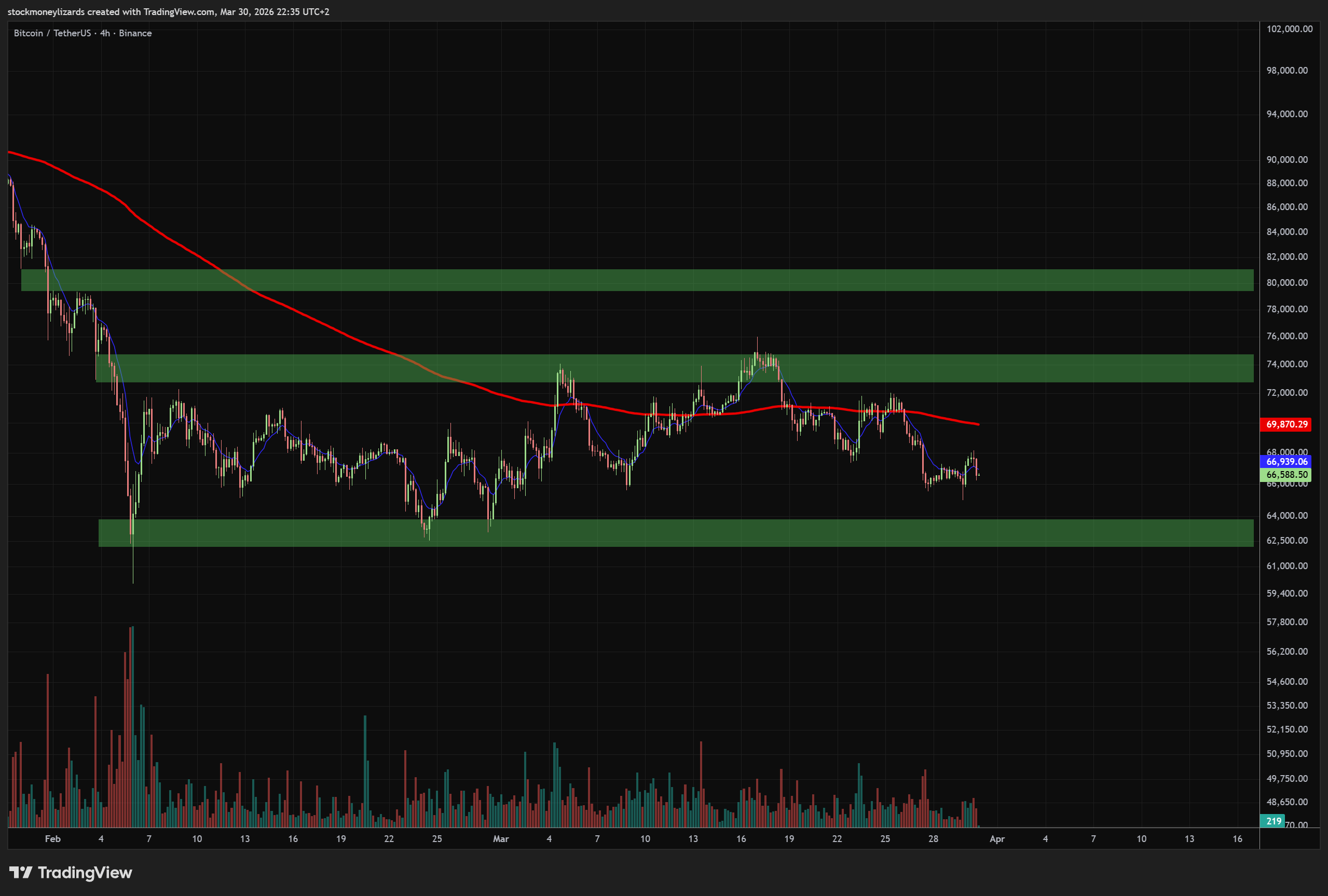 BTC is currently sitting at support (~66–67k), not at resistance anymore.