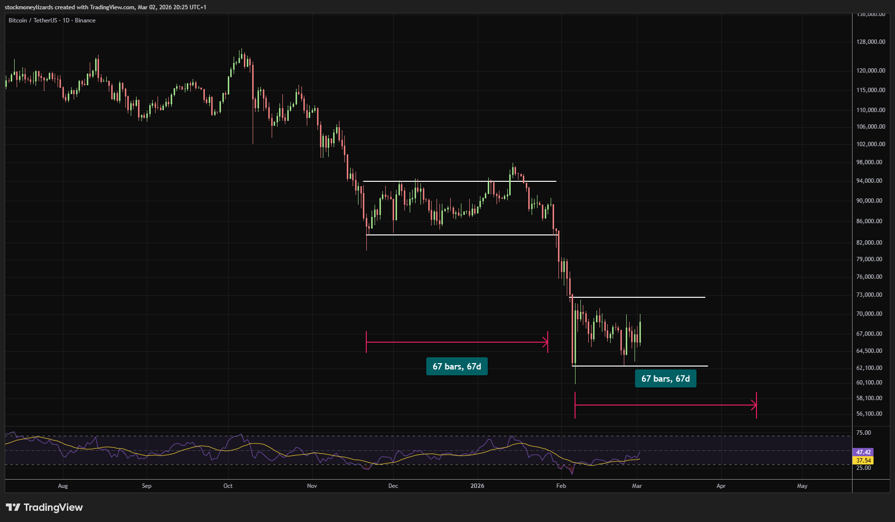 If we trade into the 58–60k region (or slightly below), that’s where I’d be far more interested in accumulating size. Bottoms are built in discomfort, not strength.