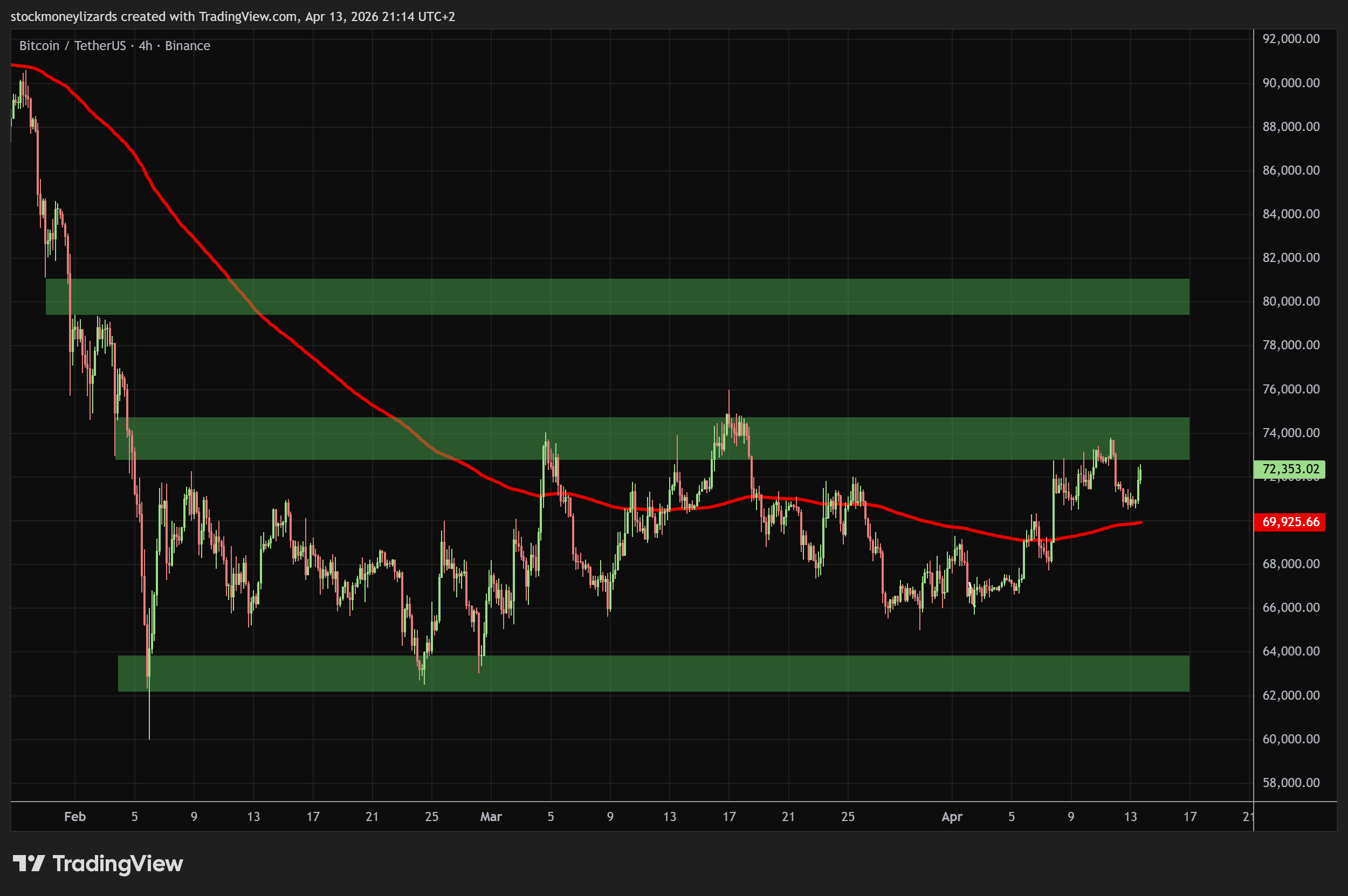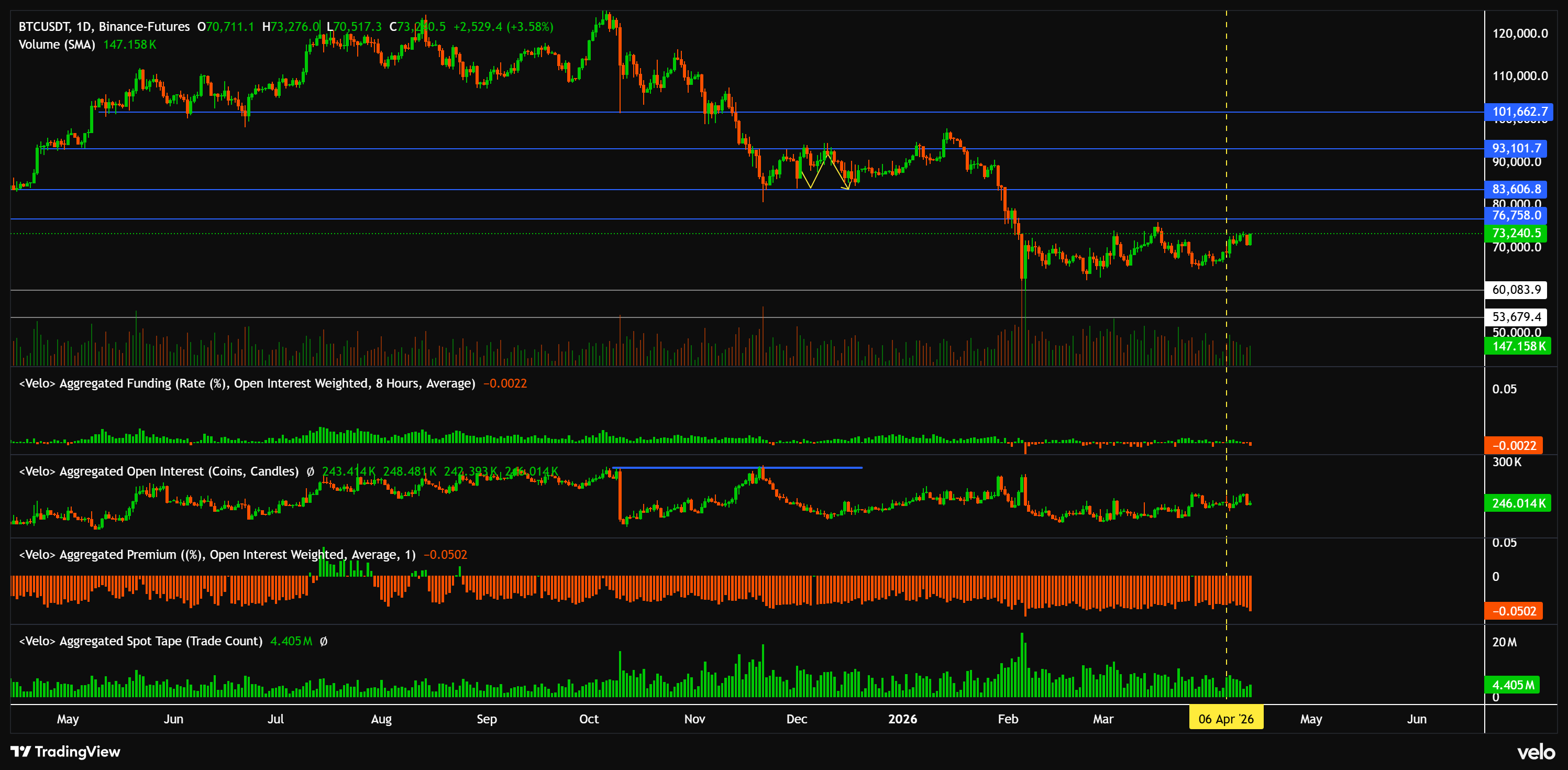 BTC spent most of the week glued to 73k resistance. It looked like we might get a clean rejection, but that never really came. Instead, price kept pressing the same area again and again, which is usually a good sign.