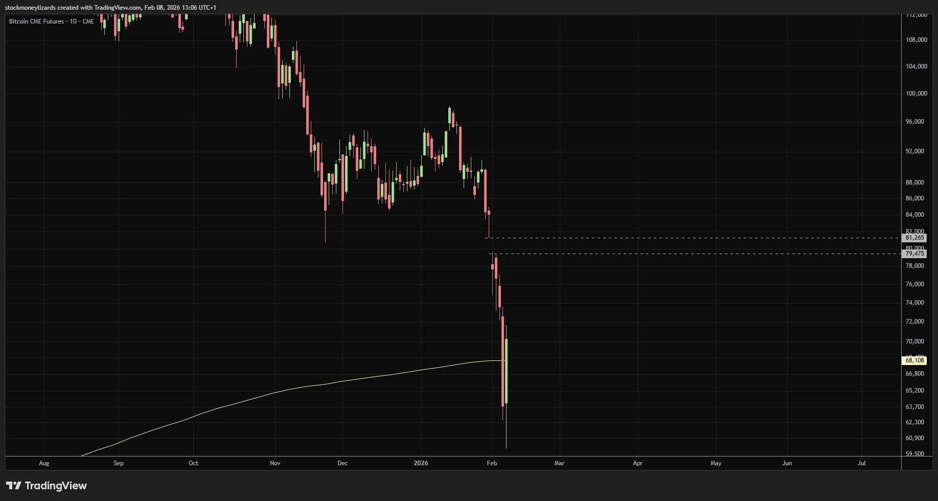 An open CME gap between ~79k–81k, now acting as a short-term magnet