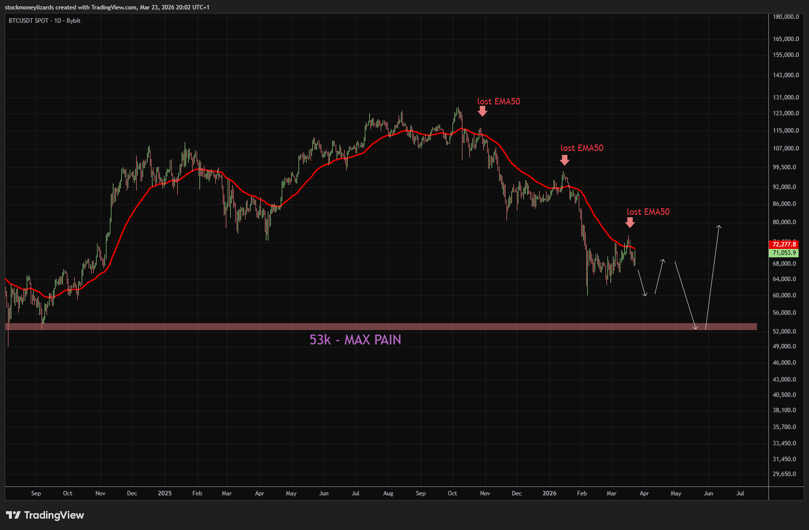 Price lost the daily EMA50 earlier, and that usually means the market needs time before the next real move.